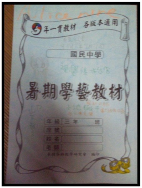 班上有很多人更精彩!可惜我沒帶相機去學校拍....有的人精彩的在裡面全空白!!也有外面畫裡面空白的上課都在畫都沒在上