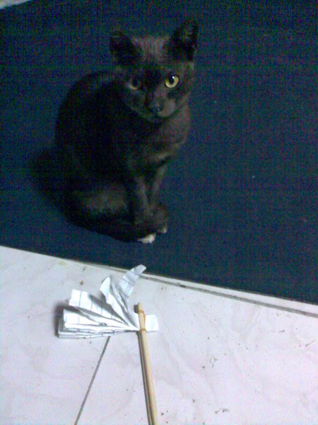 逗家貓我還免強ok但要我逗在外面生活過的貓根本不能我拿逗貓棒逗他他會看看一看然後卡哈欠、抓癢、舔毛→不理我要不就是看我到底在幹麼我覺得給他一隻活的老鼠或麻雀他會更快樂(笑)他不會吃他們只會玩到他們奄奄一息或著玩死囧他可以玩一整個晚上(我媽說的)