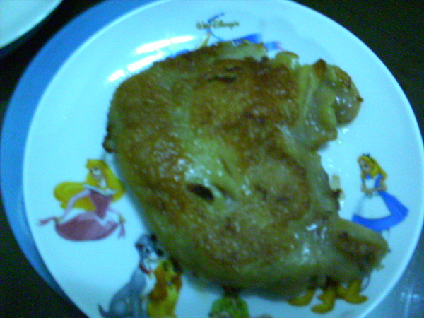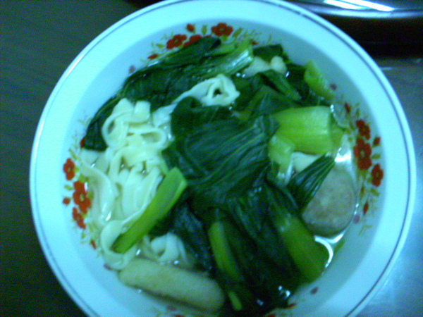 午:媽媽親手做(拉麵的麵條湯麵+煎的雞腿) 約800卡