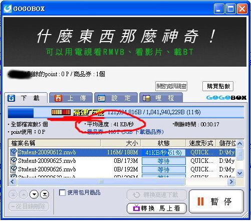 這是7/11拍得大概是這天電腦的速度很慢才這樣的吧我平常如果開一大早的可以飆到4X而且是低速下的很爽XDD看速度慢成這樣我就不下了乾脆關了,改天再下