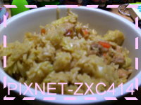午:媽媽親手做高麗菜飯(高麗菜+紅蘿蔔+豬肉+不知道是什麼東西) 約500卡;水梨半顆 約20卡