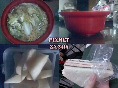 泡麵(高麗菜、蛋一顆) 約500卡三明治(巧克力、草莓) 約200卡水梨約一顆 約35卡